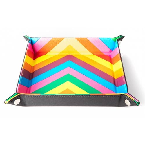 This dice tray folds down flat for easy transportation. Easily snap the trays into position for padded protection for both your dice and your gaming table.
