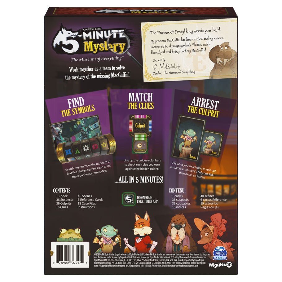 You’re on the case in this exciting 5-Minute Mystery game. The Museum of Everything needs your help. The curator’s precious MacGuffin is missing! Work as a team or on your own to search for hidden symbols in each room of the museum, earn clues and match them to discover valuable information about the thief, make an arrest and recover the missing MacGuffin … all while the clock ticks down from 5 minutes! Since case files change each time you play, every game is a new mystery. With cool games by 5-Minute Mystery, both kids and adults are sure to have a great time with fun, funny and exciting gameplay.