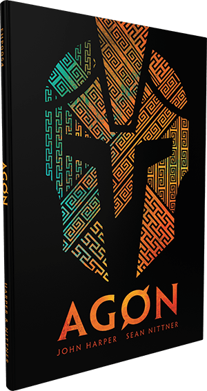 Far back in the mists of antiquity, a poet sings of great deeds wrought by mighty heroes—of monsters slain and justice restored, of wise council and devious strategies, of courage, valor, and daring—defiant of the gods themselves. In Agon, you create and play these heroes, crafting their epic tale into an immortal legend.