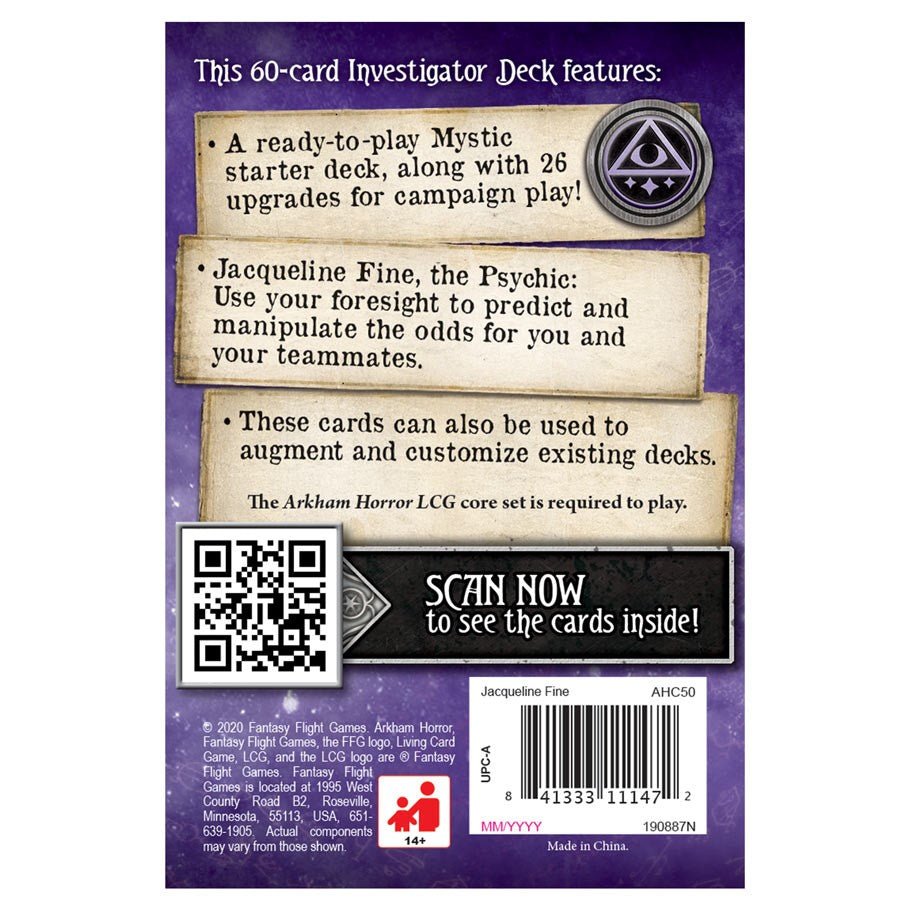 Across the five cycles of Arkham Horror: The Card Game, you’ve encountered new investigators in each new deluxe expansion, giving you more and more options for building your decks and exploring the mythos. Now, you have the chance to invite a new faces to your games with the Jacqueline Fine Investigator Starter Deck.