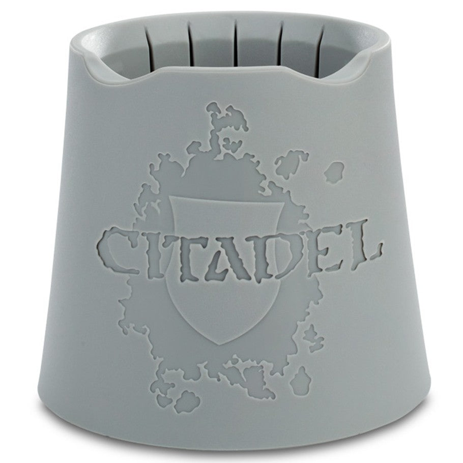 More than just a container holding water, the Citadel Water Pot has been designed by painters, for painters. Constructed from durable grey plastic, the base and inner side walls of the water pot have ribbed sections, whose textures have been chosen to clean brushes in the most effective manner. A canal at the top allows you to store bushes horizontally when not in use, and the sides feature tapered grooves – once you’ve cleaned your brush in the water, draw the bristles up through these grooves to restore a nice, fine point!