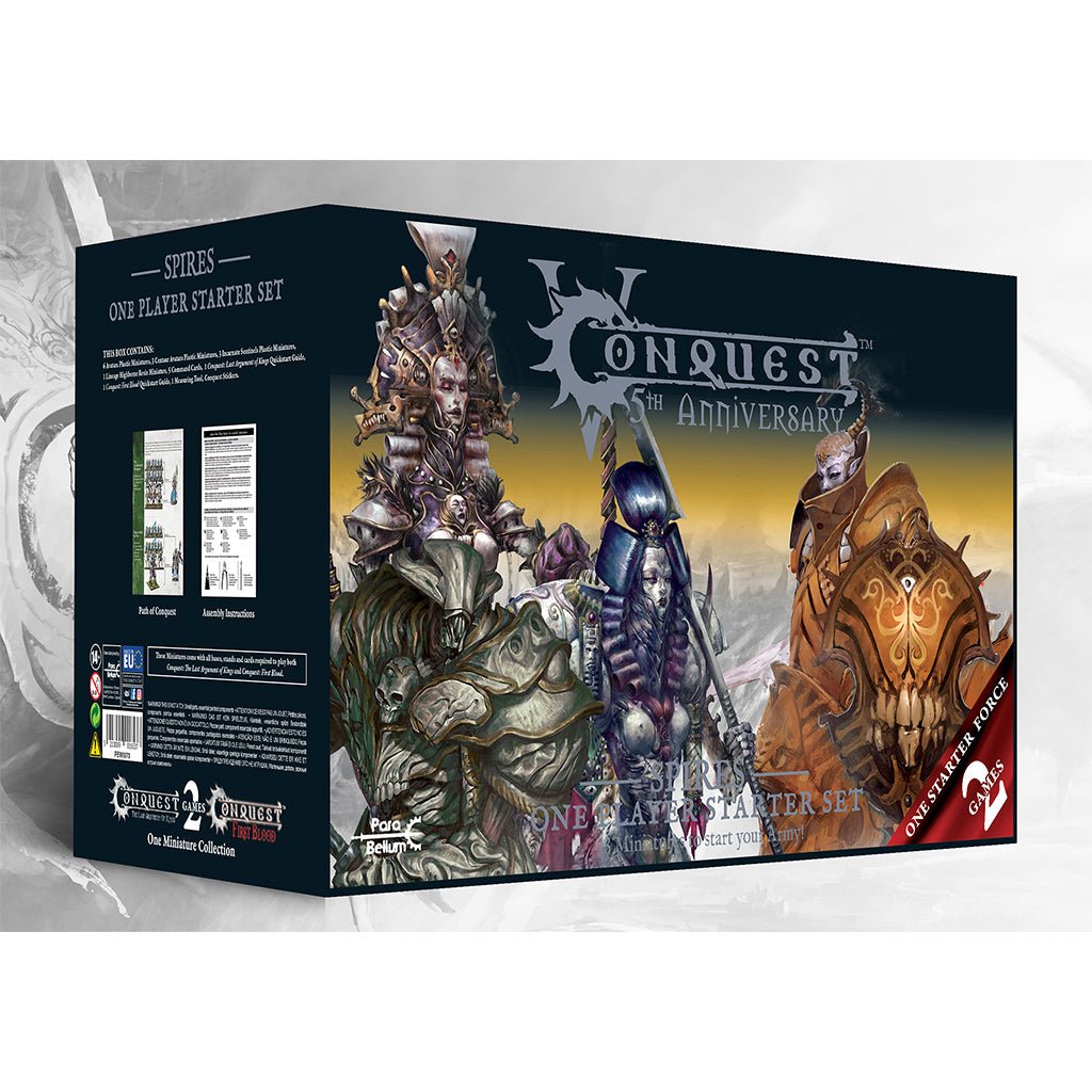 Each starter set will have a well built First Blood army as well as a great beginning set to play a game of Last Argument of Kings. Included in this set are quick start guides for First Blood II and TLAOK II, along with all assembly instructions, a great path of Conquest guide, a 5th Anniversary Decal and Measuring Tool, an EA Paper Map and all necessary command cards, bases and stands. A great value for players, a substantial discount over the prices if purchased separately.
