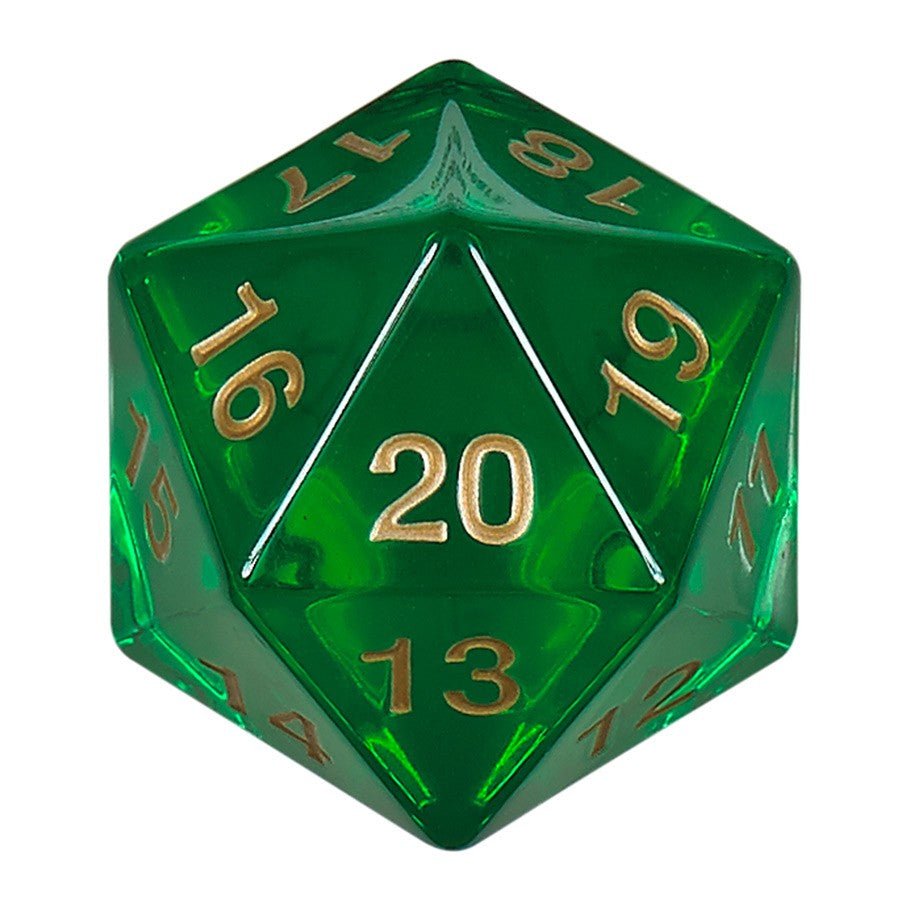 Large 55mm Countdown (or spindown) d20's. These dice have non-randomized dice #'s, making finding the right number fast. These are not suitable for use with RPG's or other tabletop games where randomized dice are required.