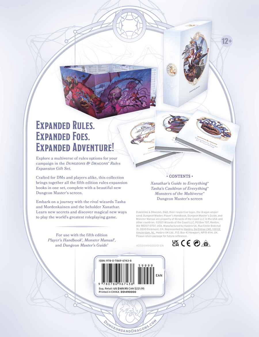 - Includes fifth edition’s best-selling rules expansions, Xanathar’s Guide to Everything, Tasha’s Cauldron of Everything, Monsters of the Multiverse, and a Dungeon Master’s screen, all together for the first time in a beautiful slip case