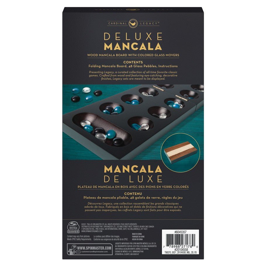 An ancient game beloved to this day, Mancala is the simple yet strategic 2-player game of moving pebbles from cup to cup on the board. Each player picks a side and places 4 pebbles into each of the 6 nearest cups. To play, pick up all the pebbles from one of your cups and drop them one-by-one into each of the next 4 cups. If the last pebble drops into an empty cup on your side, you get to take all your opponent’s pebbles in the opposite cup and put them in your end zone (your Mancala). If the last pebble played lands in your own Mancala, you get another turn. Play continues until all 6 cups on one side of the board are empty. Each player counts the pebbles in their Mancala – if you have the most pebbles, you win! Our Legacy Edition Deluxe Mancala game features a decorative folding wooden board and smooth, colored glass pebbles, the perfect game to play and put on display.