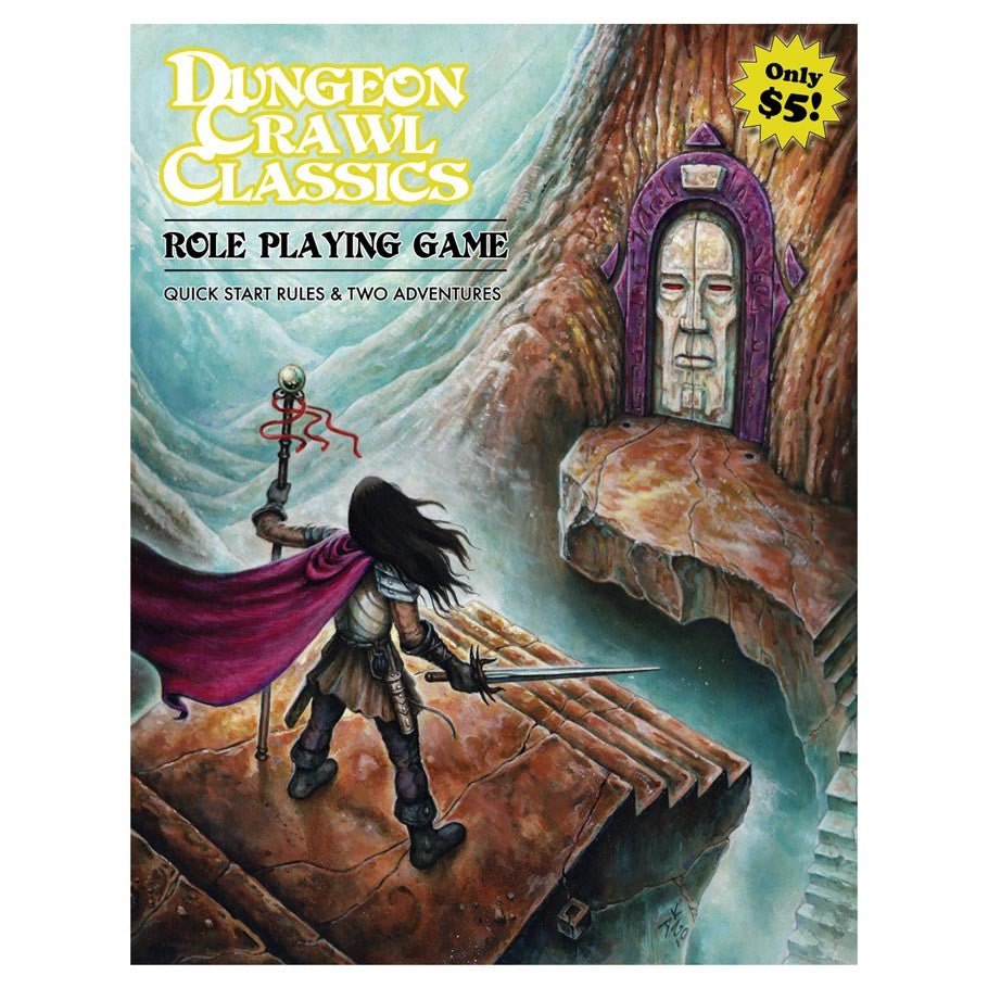 At long last, the Dungeon Crawl Classics Role Playing Game has an affordable quick start rules! The entire game is boiled down to a short QSR which has everything needed to play levels 0-2. In addition, this 48-page booklet includes not one but TWO adventures – the classic 0-level funnel “Portal Under the Stars” and a new adventure called “Gnole House” by Michael Curtis! Priced at only $5.00, this product is sure to increase your DCC RPG sales.