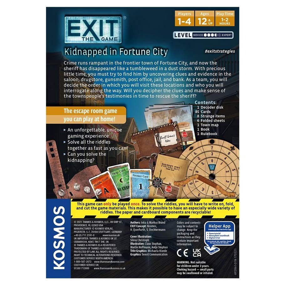 The EXIT: The Game series allows you to bring the excitement, intensity, and team spirit of an escape room to your living room. In each EXIT game, your team starts out locked in an imaginary room or trapped somewhere. You must solve a series of riddles and puzzles in order to unlock doors and objects, and reveal new riddles. Each correct solution brings you to another riddle and eventually to freedom.