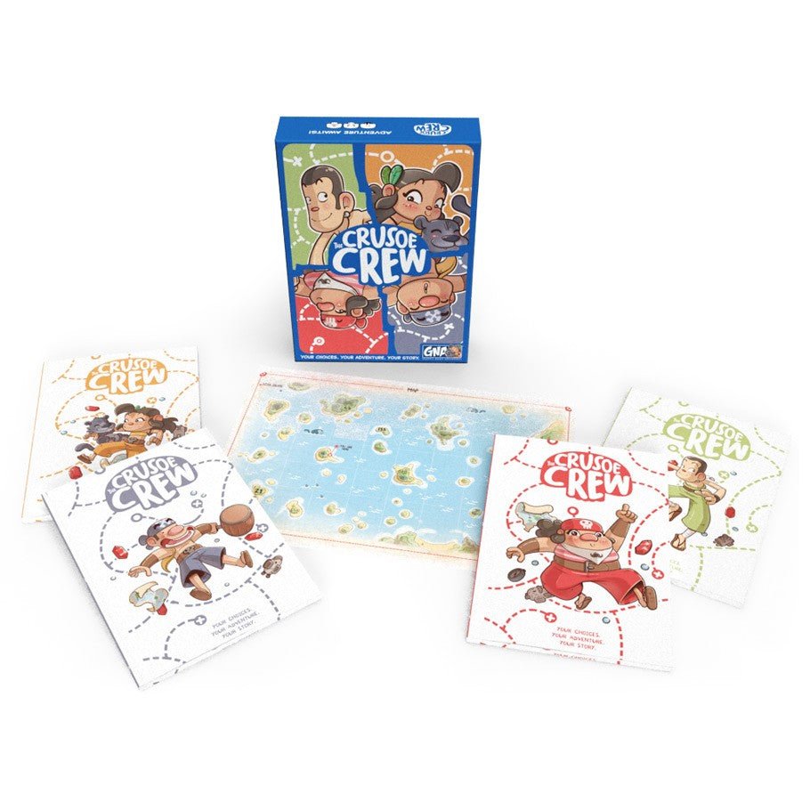 In The Crusoe Crew players choose one of four characters to play in an immersive story in which your team's choices guide your progress. Each player has their own graphic novel and their own special talent! The team has a character sheet that tracks your possessions, your coins, and your victory points. Gameplay is highly interactive and consists of searching for treasures by exploring islands that contain clues, riddles and traps. Players will have to work as a team and will be making choices about where to go and what to do in this amazing adventure game that is fun for all ages.