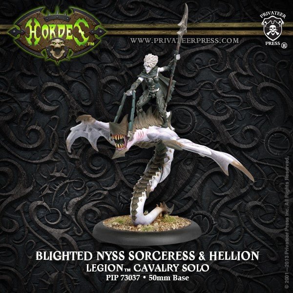 Sweeping out of the frozen skies, Hellions fall upon their land-bound enemies and deliver their masters to the heart of battle. The half-mad sorceresses who ride them must be agileenough to stand precariously atop their steeds without saddles or harnesses. With a shouted word and a pointing finger, a sorceress summons a knot ofhowling wind to rip a distant victim limb from limb.