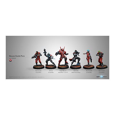 Great for anyone who wishes to start playing Infinity with a Nomads force with the Nomads Starter Pack from Corvus Belli. It provides base infantry along with special characters armed with very unique, powerful and devastating weapons to provide an all round force. In this set you will get three Alguaciles with Combi Rifles, one Mobile Brigada with a MULTI Rifle & light flame thrower, Grenzer with MULTI Sniper Rifle and one Spektr with Combi Rifle. A small but professional army that’s well equipped and ready to do what ever it takes to guarantee their independence and liberty. A great start to any Nomads army.
