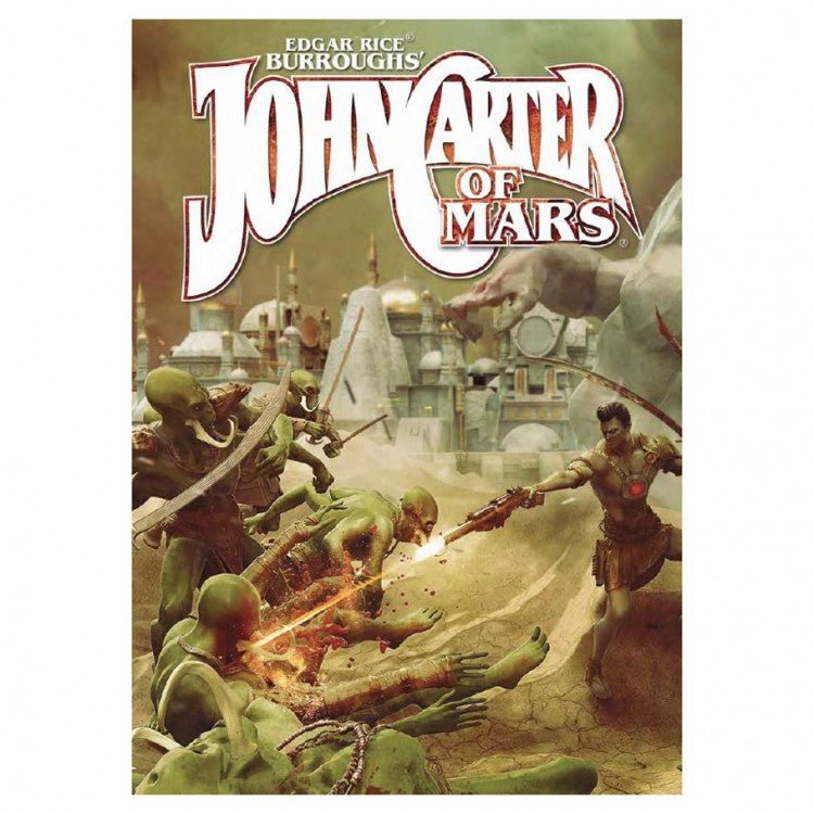 Modiphius Entertainment presents John Carter of Mars®: Adventures on the Dying World of Barsoom. A roleplaying game from the mind of Edgar Rice Burroughs that transports you to Barsoom, an arid, dying land of ancient civilizations and fearsome creatures. John Carter of Mars is a science-fantasy roleplaying game using a pulp-action inspired variant of the 2d20 System. A 288 page full colour, landscape hardback book with everything you need to play the game and introduce new players to the world of Barsoom. Uses a pulp-action, narrative driven version of the 2d20 system with a character generation system designed to create diverse and unique heroes. Detailed narrator’s section with information on how to run genre and setting appropriate campaigns. Detailed information on the people, cultures, technology and secrets of Barsoom. Introductory adventure Mind Merchants of Mars to help you begin to explore John Carter of Mars and the world of Barsoom.