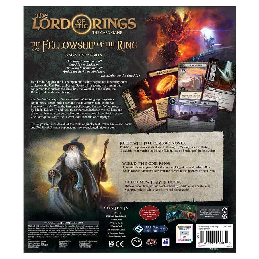 Experience the beginning of the journey to destroy the One Ring in The Fellowship of the Ring Saga Expansion for The Lord of the Rings: The Card Game! This expansion contains six scenarios that recreate the adventures featured in the first part of the legendary The Lord of the Rings saga. You’ll also find over 50 hero and player cards, which can be used to build or enhance your decks for any The Lord of the Rings: The Card Game scenario or campaign!