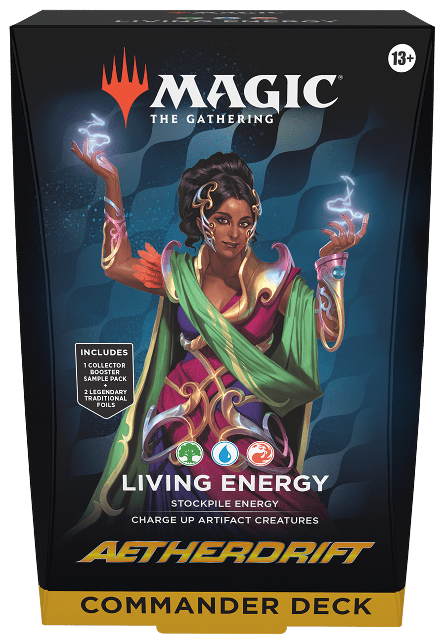 In Commander, four players come together to show their strength and strategy, with one player coming out on top. Each 100-card ready-to-play Aetherdrift Commander Deck makes it easy for Commander fans in your store to grab a deck and play right away.