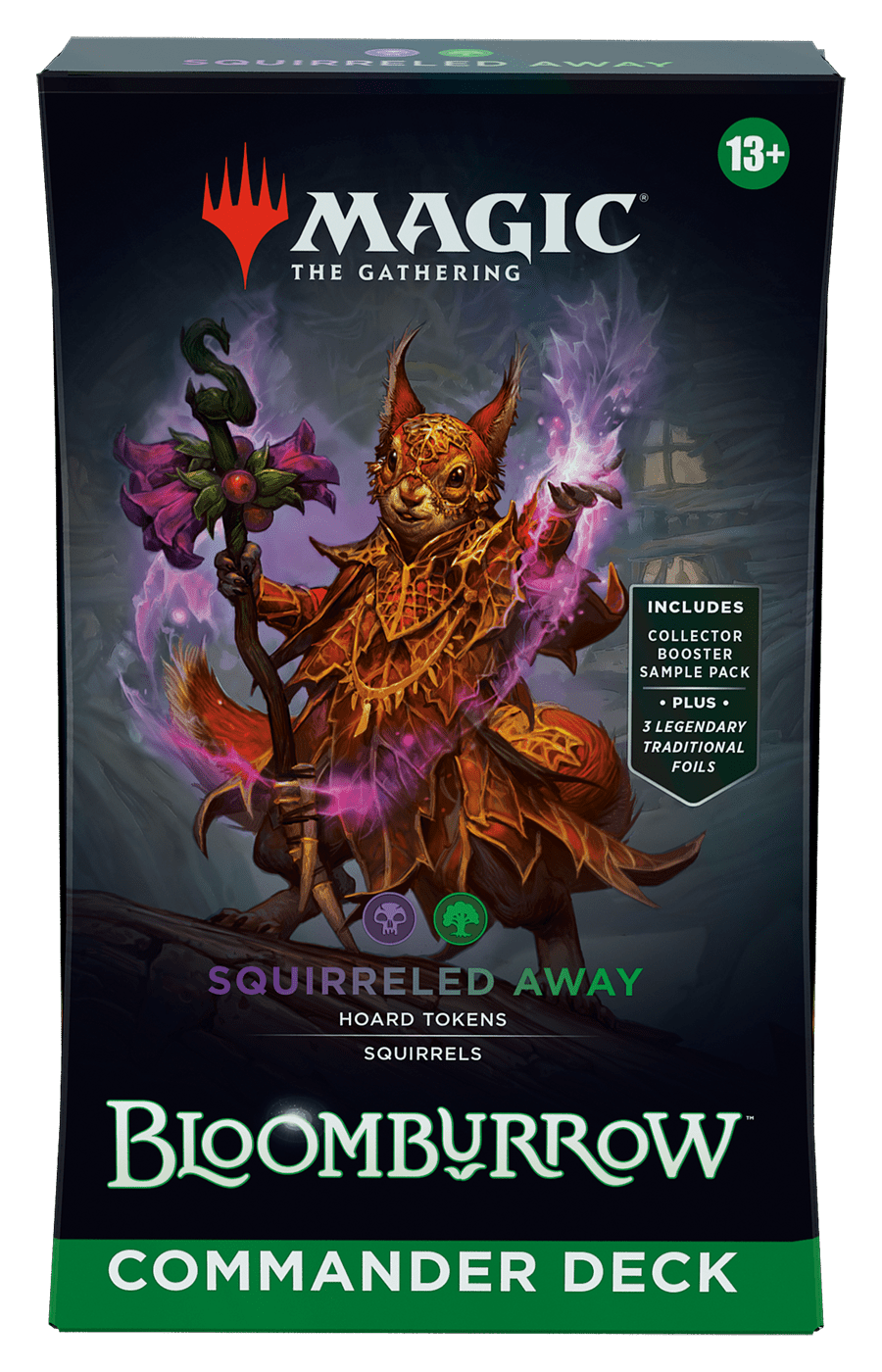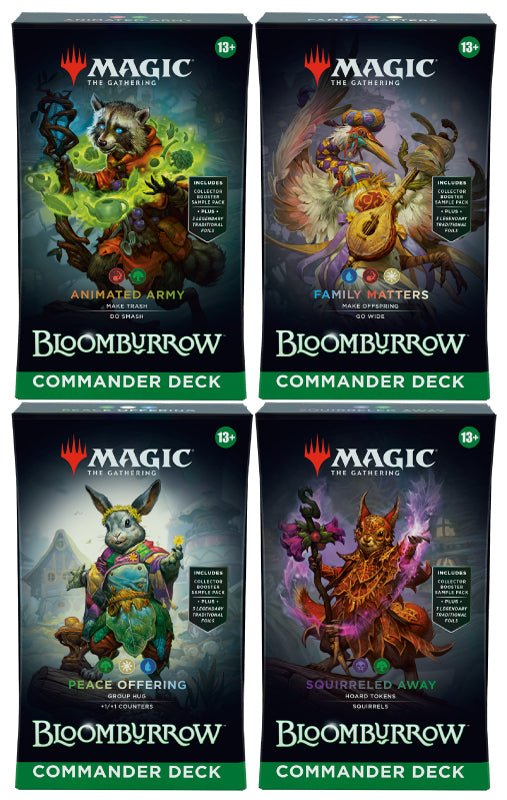 In Commander, four players come together to show their strength and strategy, with one player coming out on top. Each 100-card ready-to-play Bloomburrow™ Commander Deck makes it easy for Commander fans in your store to grab a deck and play right away.