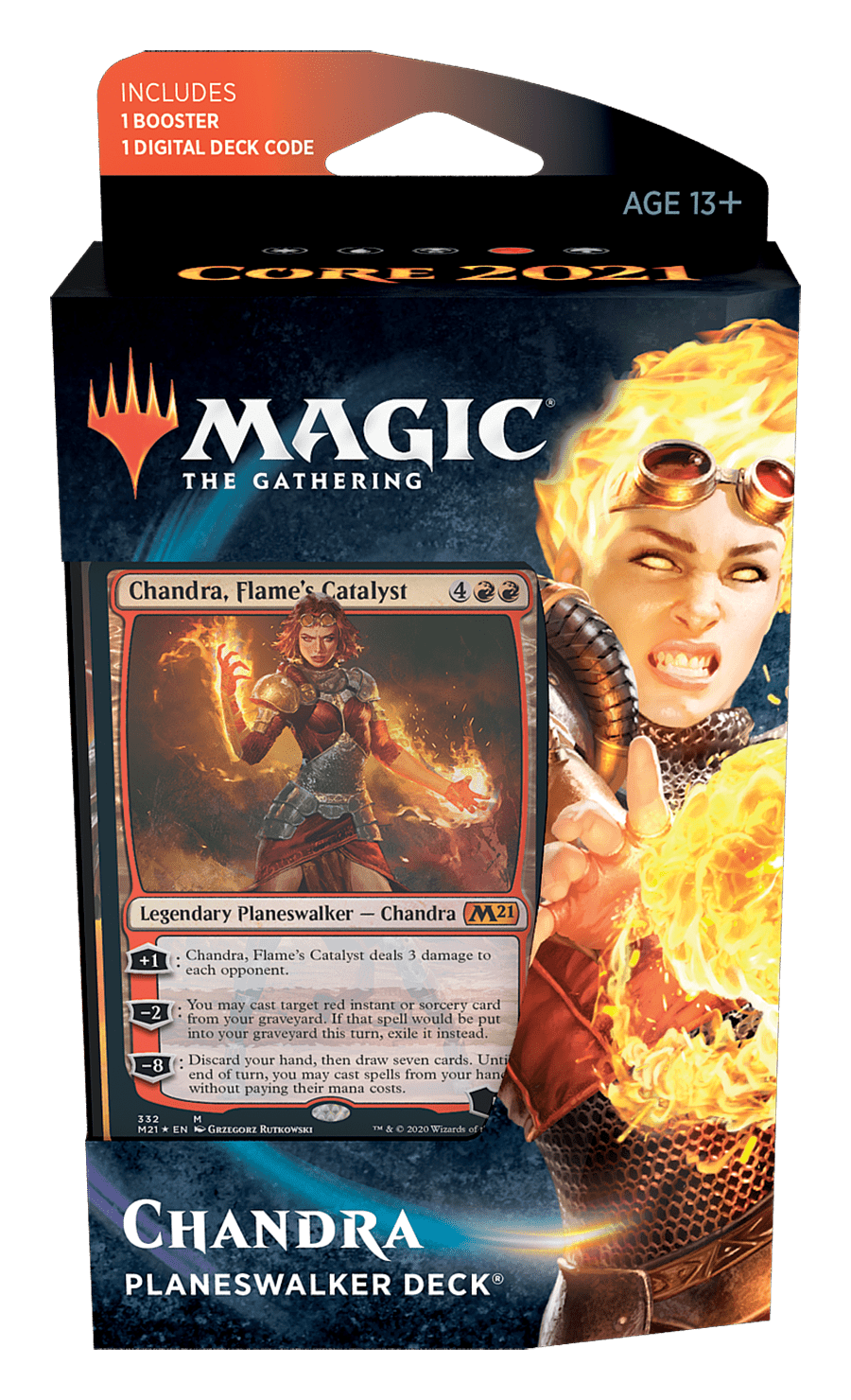 Planeswalker Decks familiarize players who are interested in Magic with basic strategy, plus the game’s setting, characters, and mechanics of the latest set. Each deck comes with a foil Planeswalker card not found anywhere else.