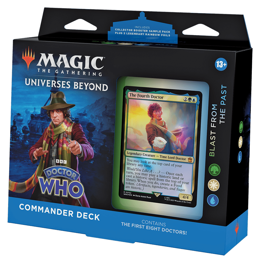 In Commander, four players come together to show their strength and strategy, with one player coming out on top. Each 100-card ready-to-play Magic: The Gathering Universes Beyond: Doctor Who™ Commander Deck makes it easy for Commander fans in your store to grab a deck and play right away.