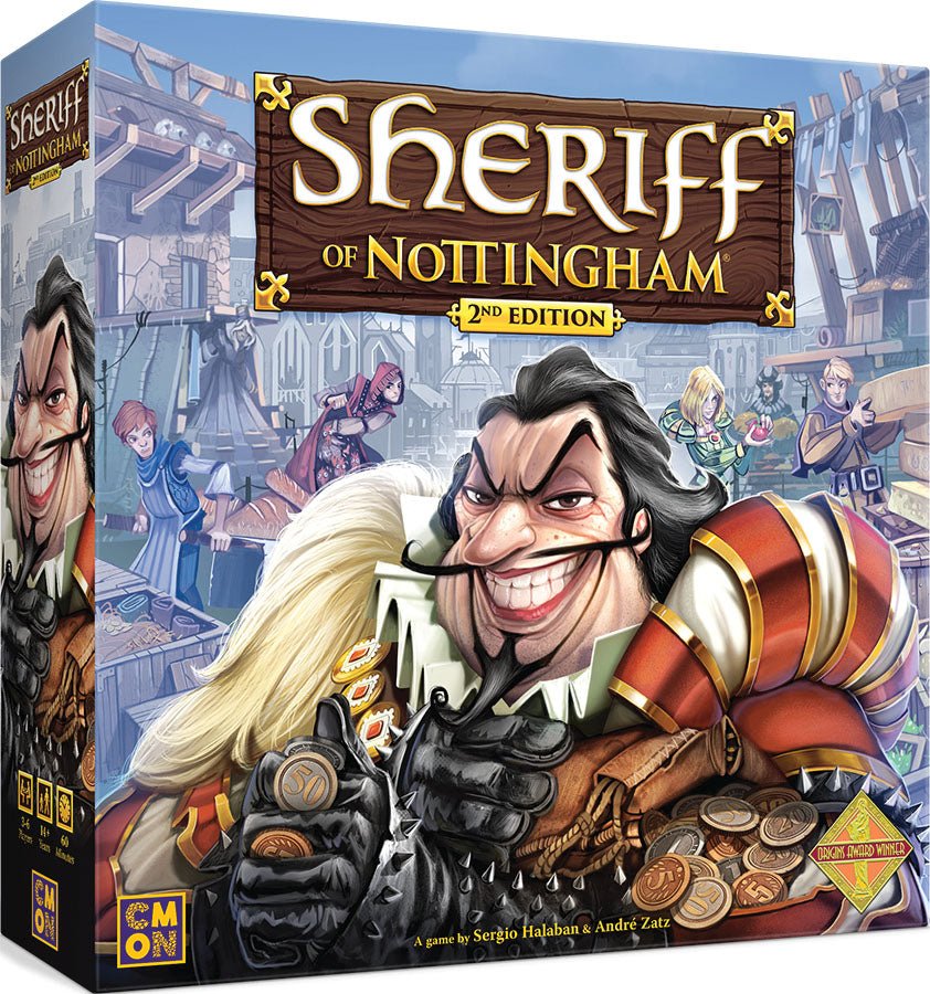 Prince John is coming to Nottingham! Players, in the role of merchants, see this as an opportunity to make quick profits by selling goods in the bustling city during the Prince`s visit. However, players must first get their goods through the city gate, which is under the watch of the Sheriff of Nottingham. Should you play it safe with legal goods and make a profit, or risk it all by sneaking in illicit goods? Be mindful, though, as the Sheriff always has his eyes out for liars and tricksters and if he catches one, he very well may confiscate those goods for himself! Declare your goods, negotiate deals, and be on the lookout for the Sheriff of Nottingham.