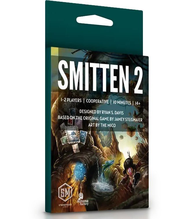 Smitten 2 is a cooperative micro-game for 1-2 players. The 9 new cards in this standalone sequel are designed by Ryan S. Davis. In Smitten 2, players work cooperatively with limited information/communication to complete two identical 3×3 grids of cards, each inspired by Stonemaier games released since the original Smitten and illustrated by The Mico. There are multiple difficulty levels and separate modes for solo and 2-player games.