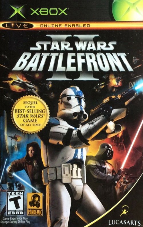 Star Wars Battlefront II adds all-new space combat, playable Jedi characters, and never-before-seen environments straight out of Star Wars: Episode III Revenge of the Sith. Fans of the original Star Wars Battlefront will also enjoy an all-new single-player experience that takes players through an epic, story-based saga centering on Darth Vader's elite 501st Legion of Stormtroopers where every action the player takes impacts the battlefront and, ultimately, the fate of the Star Wars galaxy. The game features an all-new single-player experience that takes players through an epic, story-based saga where every action the player takes impacts the battlefront and, ultimately, the fate of the Star Wars galaxy. The sequel features improved flight control, complex space combat that allows players to board enemy capital ships and battle to take over flying command posts or sabotage the ship to be used against the other faction, increased total online player numbers, and memorable multiplayer encounters in 12 new locations.