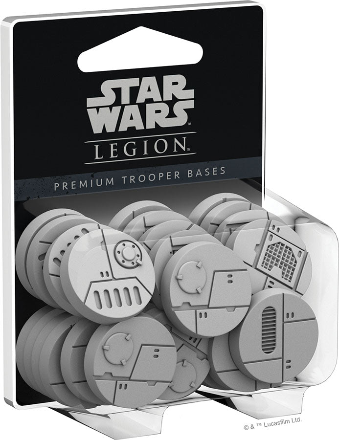 Whether you prefer to command legions of Stormtroopers in the name of the Empire or lead elite Rebel strike teams, the premium bases included in these packs upgrade the look of your army and invite you to further immerse yourself in your Star Wars: Legion battles. Each pack of Premium Trooper Bases contains 32 premium 27mm round bases, enough to upgrade eight standard squads of four trooper miniatures like the Rebel Troopers, Stormtroopers, or Fleet Troopers. The bases contained in the pack include four copies of eight unique sculpts, carefully designed to look like environments at home in the Star Wars galaxy, while their neutral gray tone of plastic gives you the opportunity to paint and customize your bases to fit your armys style.
