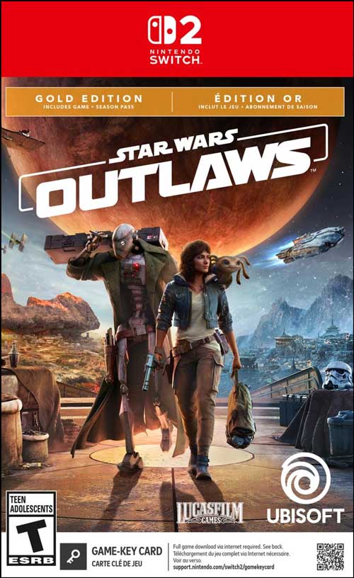 Star Wars Outlaws Gold Edition includes the base game plus the season pass, which includes 2 story packs, an exclusive Day 1 mission, and 3 character bundles.
