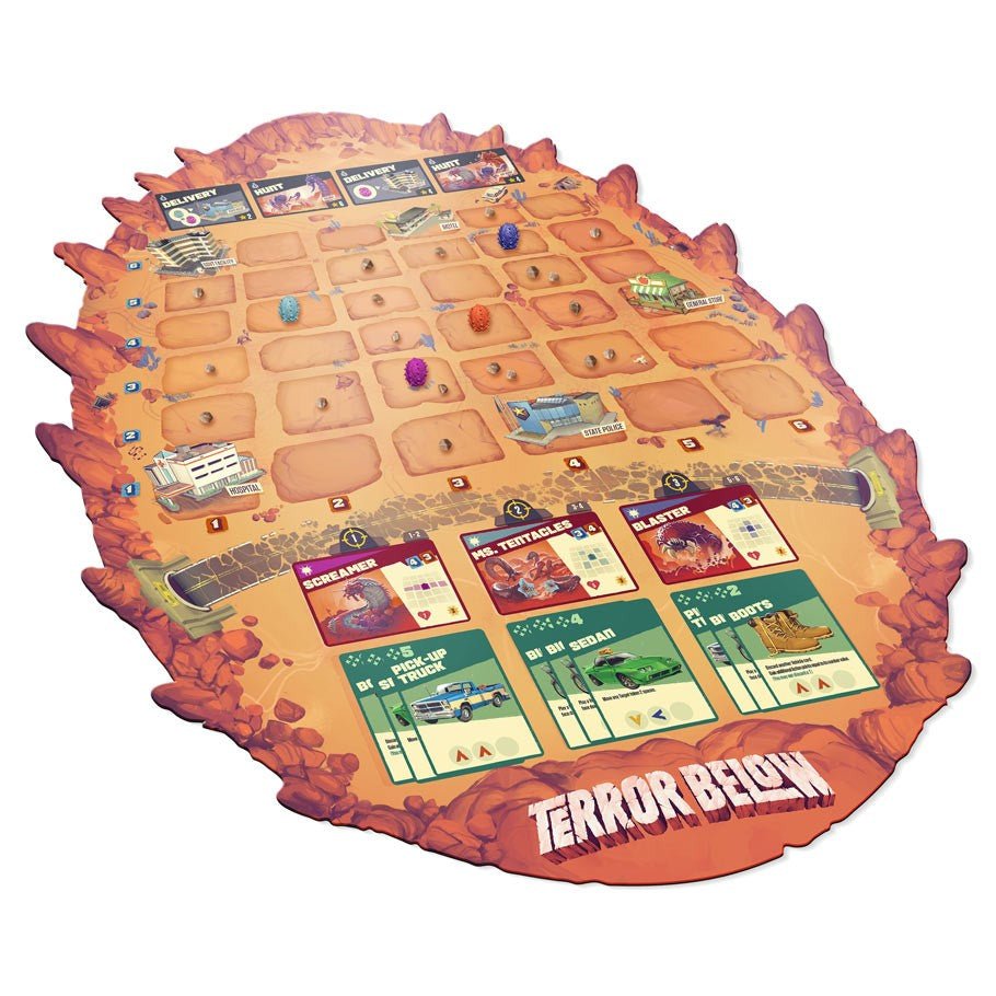 The goal of Terror Below is to be the first player to score 20 victory points (VP) by collecting worm eggs and delivering them to locations around town — or alternatively, by hunting down and killing those vicious worms.