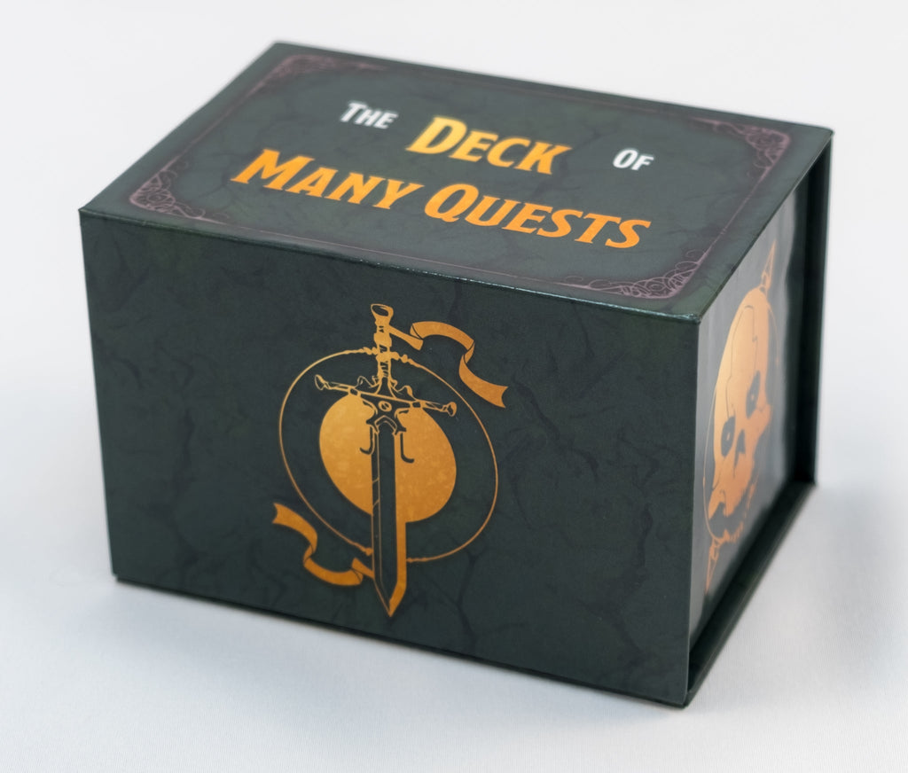 Battle fearsome beasts. Parlay with pirates. Solve mysteries. Push back the apocalypse. The Deck of Many Quests is a tool for Game Masters and Adventurers alike. Think Cards Against Humanity meets Dungeons & Dragons! The deck provides you nearly limitless inspiration for quickly and easily building your own adventures. Inside this box are over 200,000 unique quests. The Deck of Many Quests is designed to be system-agnostic. It doesn’t matter what fantasy tabletop roleplaying game you’re into—we’re here to inspire you! There are no additional systems or rules to learn, so you can start creating your own adventures in no time. It's as easy as 1-2-3!