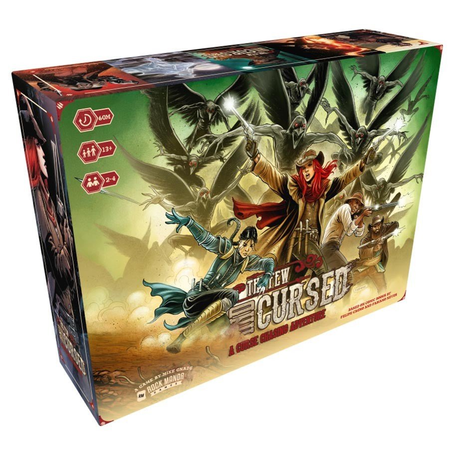 The Few and Cursed is a deckbuilding adventure game that takes place in a post-apocalyptic earth where most of the water on the planet has been gone for seventy years. Without water, civilization just halted any progress and stayed pretty much the same... with the exception of the monsters, magic and curses that showed up. Players will take on the role of a curse chasing bounty hunter looking to make a name for themselves. Players will traverse the desert of the Pacific Ocean as they improvise and acquire new cards for their deck on their quest for the biggest bounties. Made in China.
