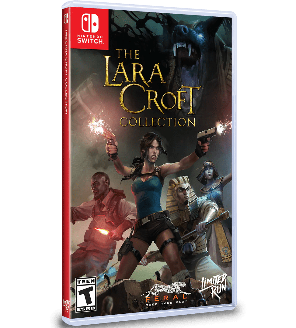 The Lara Croft Collection is on a region-free physical cart for the Nintendo Switch.