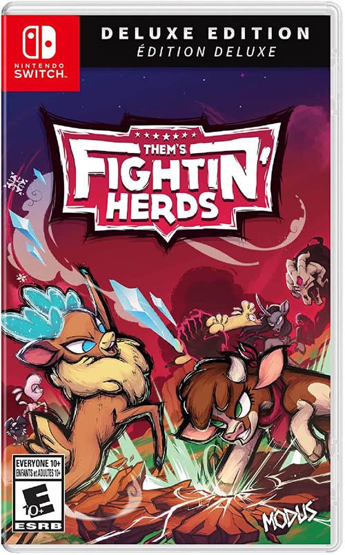The fiercest four-legged fighting game gets physical! Beloved 2D fighting game Thems Fightin Herds brings non-stop adorable mayhem to home consoles with an all-new physical release. Featuring a cast of characters designed by acclaimed cartoon producer Lauren Faust, this rich fighter provides unique combat mechanics, beautiful stages, and stunning animation. Learn the ropes as you play through an episodic story mode filled with challenging boss fights, and then take your skills online to battle against other players from around the world with GGPO rollback netcode! The Deluxe Edition includes Thems Fightin Herds (base game) and the Season 1 Pass which will be available after launch. The Season 1 Pass includes: 4 Additional playable characters, 4 unique stages, Exclusive character palette pack (1 for each character), and 4 Exclusive Pixel Lobby accessories.