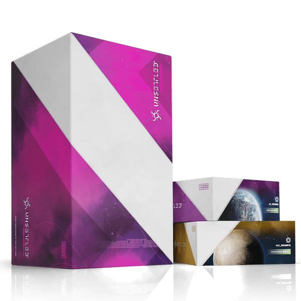 Unsettled® is an award winning cooperative game system built around a versatile framework and a myriad of plug and play planets. The framework features all the basic components that will be used in every play. The planet boxes hold everything that makes that planet's experiences unique, like the cards and tokens that make up the environment and the things you find there.