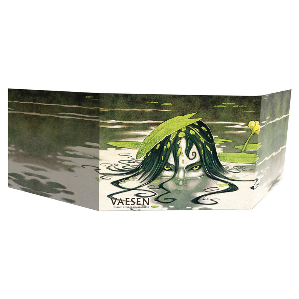 A deluxe Gamemaster’s screen in landscape format for Vaesen – Nordic Horror Roleplaying. It features Johan Egerkrans’s art on the outside and a host of useful tables and important information on the inside, while keeping the GM’s plans hidden from the eyes of inquisitive players.