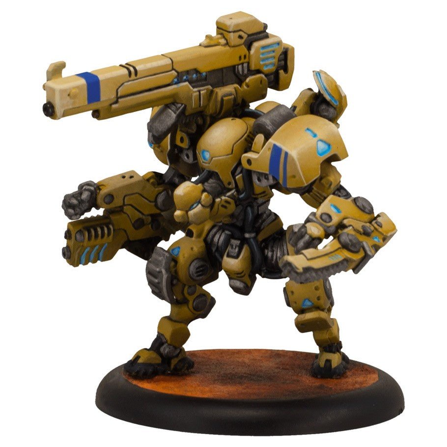 As befitting the ragged and stalwart forces of the Marcher Worlds, the Dusk Wolf is a formidable engine of war. Its dependable and durable chassis supports a versatile weapon system featuring multiple specialty cortex options alongside a lethal array of options for armament. These deadly weapons, including Particle Accelerators, slug guns, and high-powered Blazers, are further augmented by mechanika integrated directly into the machine. The more Arc the Dusk Wolf’s Arcantrik Turbine is charged with, the faster the warjack can become. It can even spike, or spend, Arc to reposition itself on the battlefield, granting it incredible maneuverability in battle.