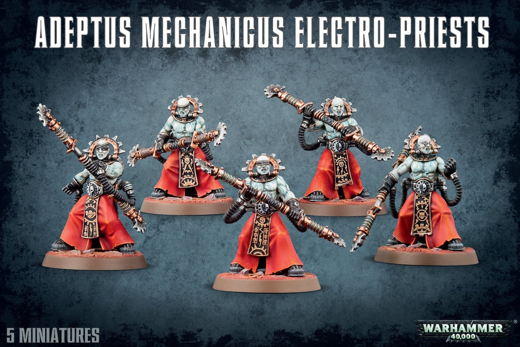 Multi-part plastic kit contains everything needed to build five figures. Electro-Priests can be assembled as either Corpuscarii or Fulgurite. Bases included.