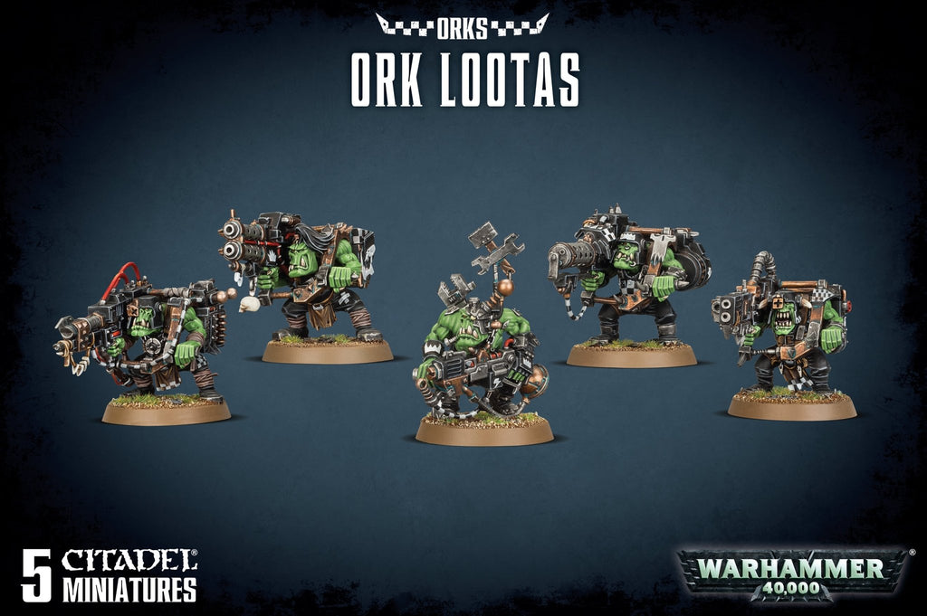 This multipart plastic boxed set contains enough components to make 5 models: either 4 Lootas or 4 Burna Boyz, as well as an Ork Mek armed with a kustom mega-blasta. Models supplied with 32 mm round bases.