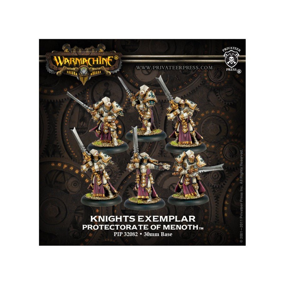 The Knight Exemplar unit comes in a box (PIP 32082). A player may field up to three Knight Exemplar units for each warcaster in a Protectorate of Menoth army.
