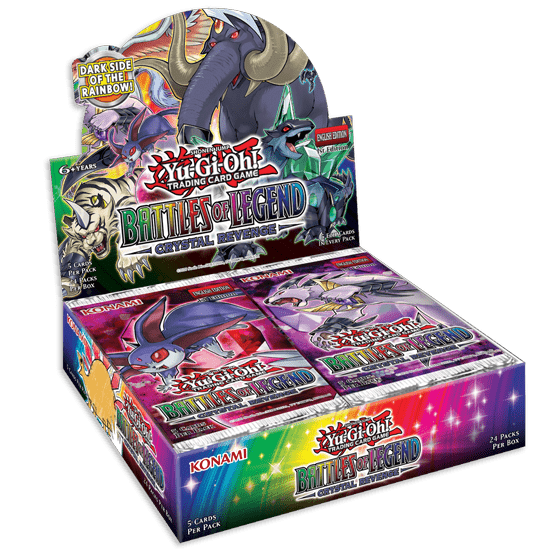 The all-foil Battles of Legend: Crystal Revenge* booster set introduces new, never-before released cards from the Yu-GiOh! animated series ranging from the original all the way through Yu-Gi-Oh! VRAINS!